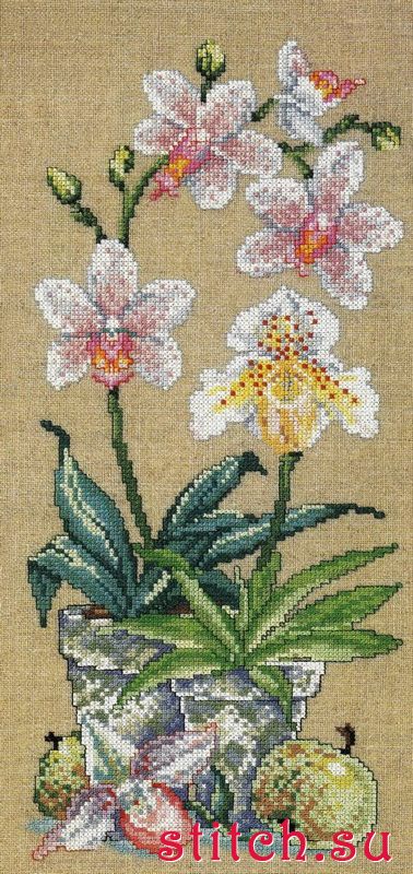 Орхидеи в цветочном горшке (Orchid Study), 24х45 18х63,5, лен 28, счетный крест