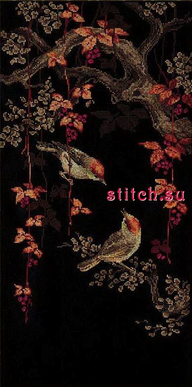 Райские птички 3, 30х60, 15 цветов, счетный крест и вышивка лентами