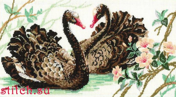 Черные лебеди, 40х24, 16 цветов, нитки шерсть, счетный крест
