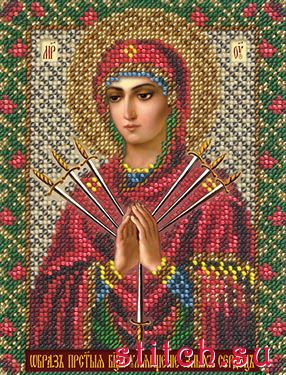 Богородица Умягчение злых сердец, 12,5х16,3, вышивка бисером