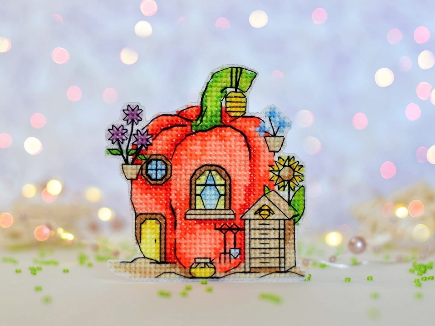 Крест, бэкстич, фр узелки/бисер