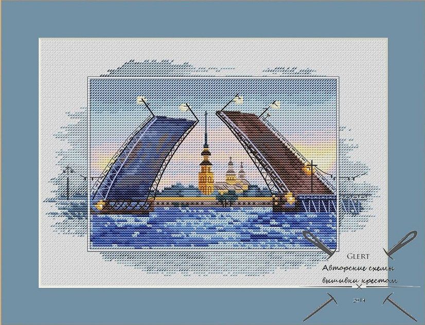 Санкт-Петербург (по рисунку Анны Петуновой). Размер 137х88 крестиков, 37 цветов и бленды из них. DMC .