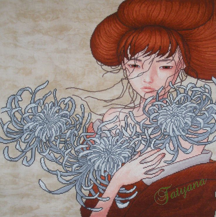 Хризантемы. Размер 292х293 крестика, 31 цвет (24 чистых + 7 блендов), DMC