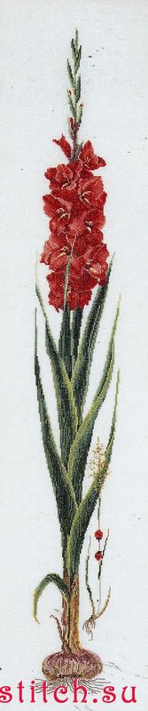 Красный гладиолус, 20х88, аида 16 или лен 32, счетный крест