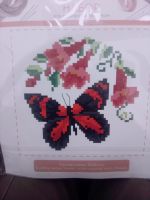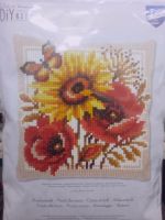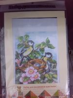 Не очень понятно, что за набор, покупался, вероятно, в Галамарте, но могу путать. Ни авторства, ни производителя на упаковке не наблюдаю. Канва в комплекте... нормальная, правда, кривовато отрезана. Вполне удобоваримые пяльцы. Иглы и нитки в работе не пробовала пока. На 14 каунте будет грубовато, по-моему, а на помельче - может и неплохо получится. Может и вышью со временем.