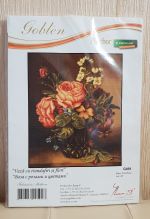 Luca-S G491 Ваза с розами и цветами, 24х29, 45 цветов, гобелен