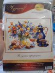 Чудесная игла, В лучших традициях, 38×29см. Прелестный синий сервиз и яркий букет!