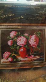 "Магия канвы" Пионы. Бисер, частичная зашивка.