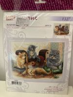 Кошачье семейство, 40х30, аида 14, нитки шерсть, счетный крест