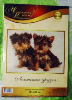 ТМ Чудесная игла, арт. 59-06, "Лохматые друзья". Увидела в нашем местном ИМ и понравился сюжет. Но тут надо менять канву на меньший каунт. С имеющейся в наборе... выглядит очень пиксельно.