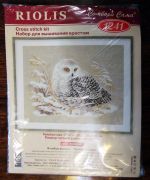 ТМ Риолис, арт. 1241 "Полярная сова". Чуть не забыла про неё. Она у меня распакована, а значит, считается начатой. Но пока что-то не хочу шерсти. И ещё, у меня... есть остаточки от набора Риолис арт.1071 "Ирисы в вазе". Свекровь вышивала подруге на ДР, я забрала схему и остатки ниток. Буду отшивать повторно, со сменой канта и скорее всего тона канвы.