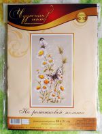 Набор от Чудесной Иглы, артикул 42-12, "На ромашковой полянке", размер готовой работы 18х31 см, 22 цвета мулине в палитре, канва 14 каунта серо-коричневого цвета.