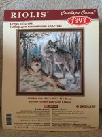 Волчья пара, 40х40, аида 10, нитки шерсть, счетный крест