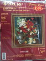 Ваза с маками, васильками и хризантемами по мотивам картины В. Ван Гога, 30х30, аида 14, счетный крест