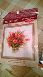 Описание: Тюльпаны в вазе, 40х40, аида 10, нитки шерсть, счетный крест