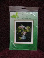 Яблоневый цвет К-12. Набор фирмы "Вышивалочка" По мотивам картины Martinа Johnsonа Heade "Apple Blossoms in a Vase" Размер вышивки в сантиметрах: 28x30 Размер вышивки в крестиках: 159x164... Техника исполнения: счетный крест Тип схемы: цветная символьная Тип канвы: Аида 14 Цвет канвы: черная Количество цветов: 23 Дополнительные элементы: мулине металлик Заполнение: частичное