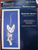 Panna Золотая серия К-0694 «Золотой сфинкс», 11,8x37, 10 цветов, Aida 14 темно-синяя, счетный крест, схема черно-белая. В работе используется бисер.