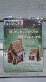 Новогодний домик, 9х14,5, пластиковая канва, счетный крест и вышивка бисером