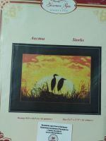 Золотое Руно. Аисты. Подарили. Начала вышивать, но пока не пошло. Здесь вышивается только фон,на черной канве. Сами аисты остаются не вышитые, как силуэты.
