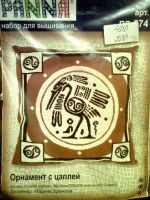 Panna ПД-574 "Орнамент с цаплей". Куплена абсолютно случайно, но любима много раньше. Моя любимая подуха. Коричневая канва, всего 2 цвета ниток: молочные и... темно-коричневые. Шьется в три нитки.