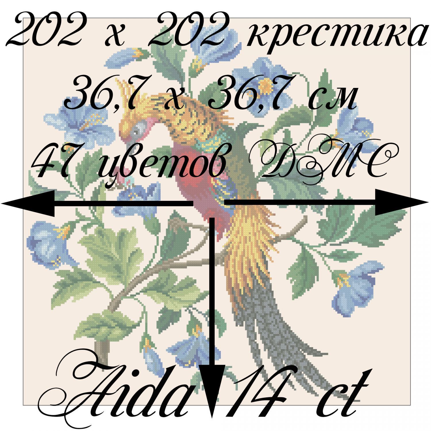 Размер 202х202 крестика, 47 цветов, ДМС.