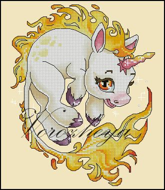Единорожек Искорка (Огонь). Размер 96х121 кестик, 22 цвета + 11 блендов
