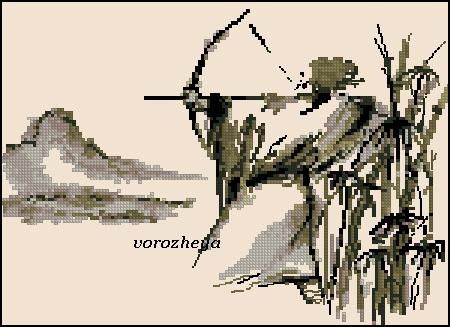 Лучник. Размер 150 Х 106 крестиков, 9 цветов